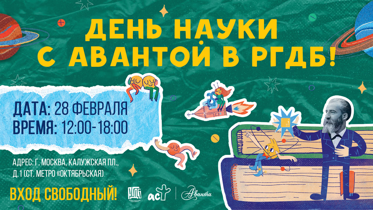 28 февраля 2026 года в Российской государственной детской библиотеке пройдет масштабный детский праздник науки и чтения в честь дня рождения редакции детских научно‑популярных изданий «Аванта» (издательство АСТ).
