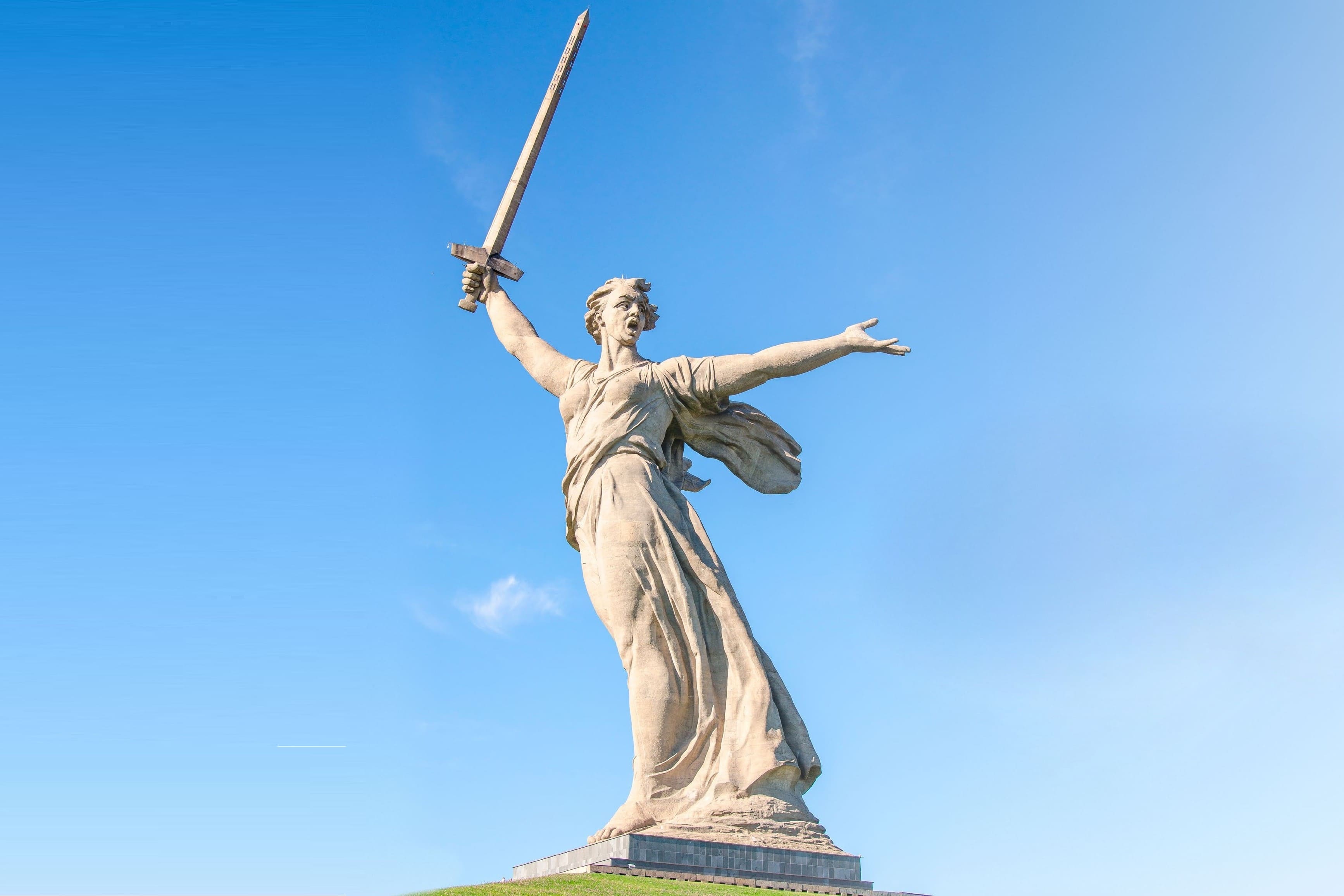 8. С началом Великой Отечественной Войны в тыловые регионы СССР было эвакуировано 2 743 промышленных предприятия, на которых трудились порядка 15 млн. человек. Это был тыл, ковавший нашу Победу. Где находятся и как называются известные памятники, объединённые в серию «Меч Победы»? Что символизирует эта композиция?