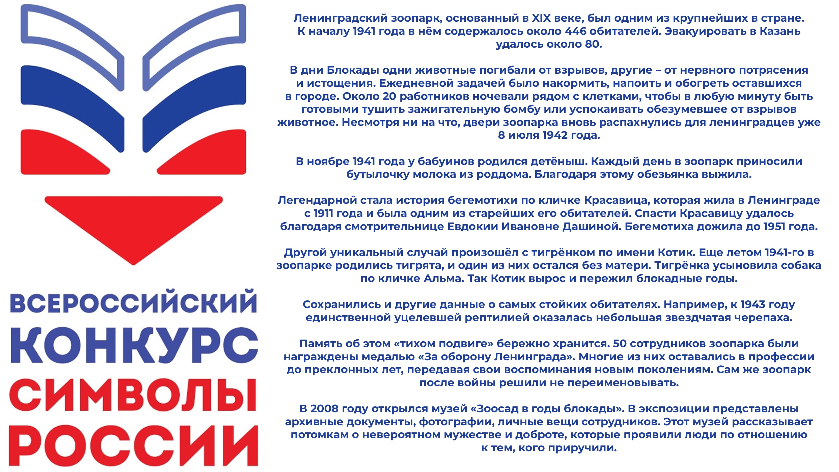 10. Во время Блокады Ленинграда подвиги совершали не только солдаты, но и жители осаждённого города. Расскажите о судьбе животных Ленинградского зоопарка и подвиге его сотрудников.